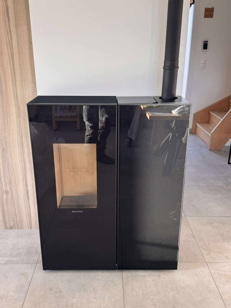 Pose d'un POÊLE A PELLET RED modèle LOTO MULTIAIR en 13.8 Kw noir