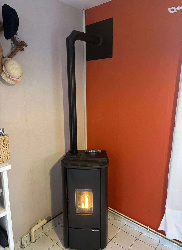 Pose d'un POÊLE A PELLET 7 kw gain de place